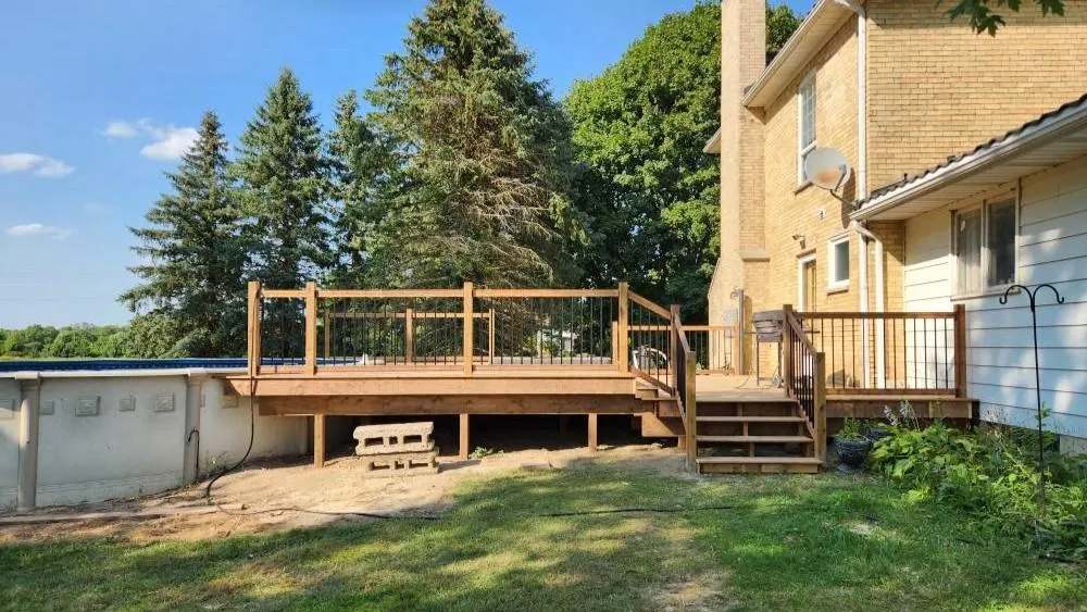 We needed a deck that went around our hot tub, with 2 access holes built in, a couple of steps up, and out to the edge of our round pool. Mike and his crew were timely, professional and tidy, and he gave useful advice and suggestions for the layout. He set a start date with an estimated end date and they were on time, and the deck is beautiful and functional. he was able to accomplish everything we had asked for. the entire area was safe and clear of nails and debris, and the final product is so nice we spend much more time out there than we used to! we will definitely hire this team for future jobs. thank you!